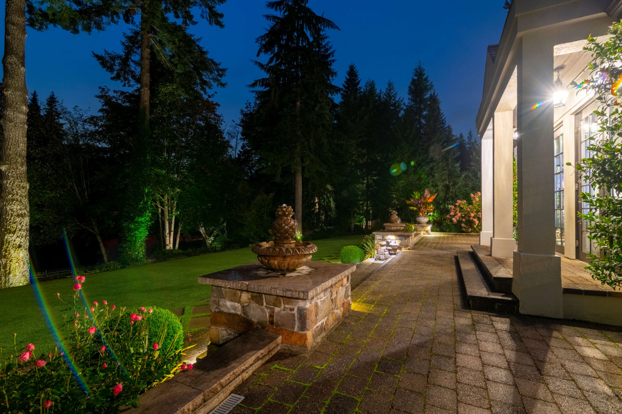Nestled deep within the evergreens of Woodinville, this Lake of the Woods estate blends grandeur with quiet intimacy—especially after dark. Northwest Outdoor Lighting was brought in to transform the property into a warm, inviting sanctuary using a total of 147 custom-selected fixtures in 3000K—a color temperature that provides a soft, welcoming white glow.